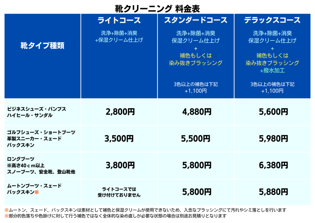 ※靴修理サービスの料金は別料金となっております。